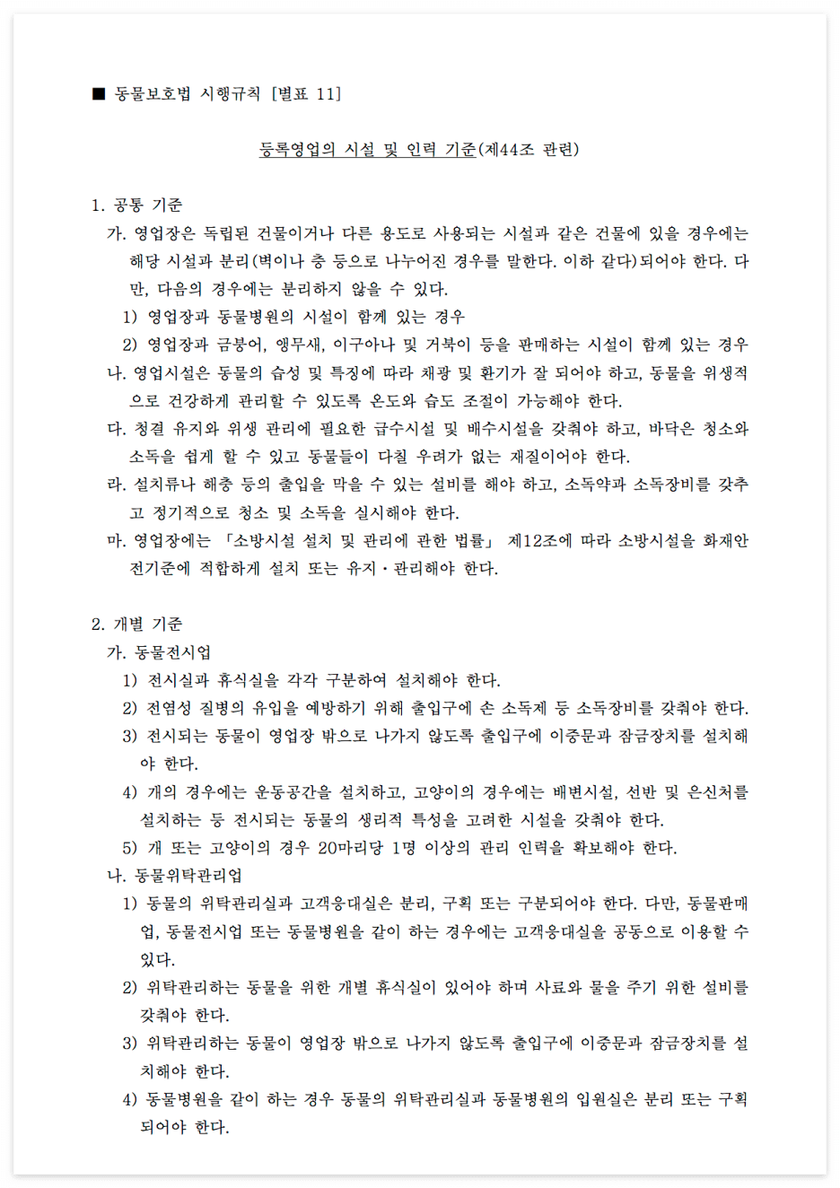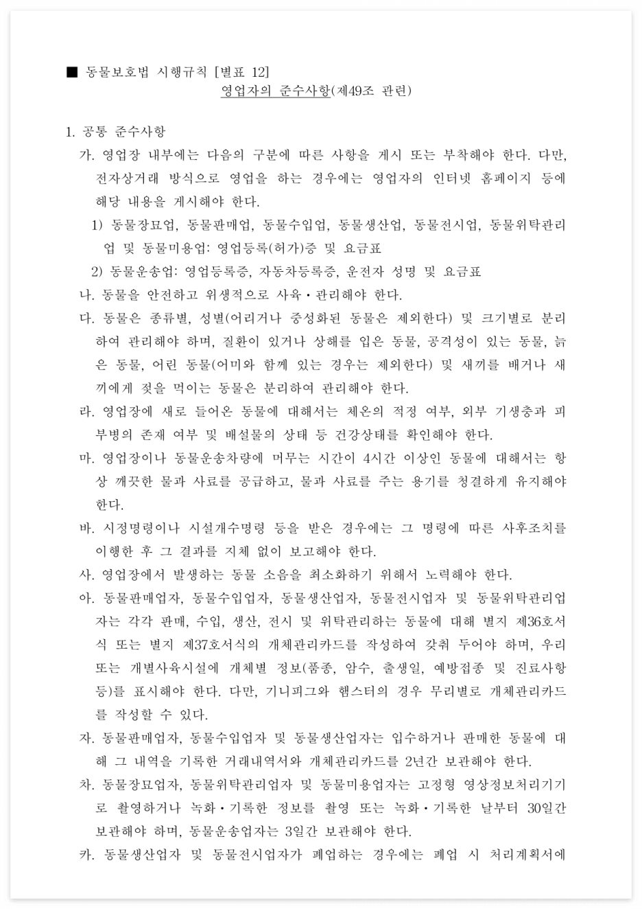 이외에 동물위탁관리업 등록을 준비하거나, 영업을 하면서 지켜야 할 것들이 많은데요.