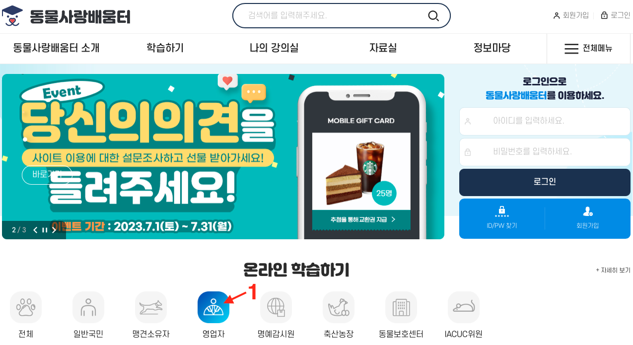 교육 수료증은 동물사랑배움터 홈페이지에서 교육을 이수하면 받을 수 있어요.