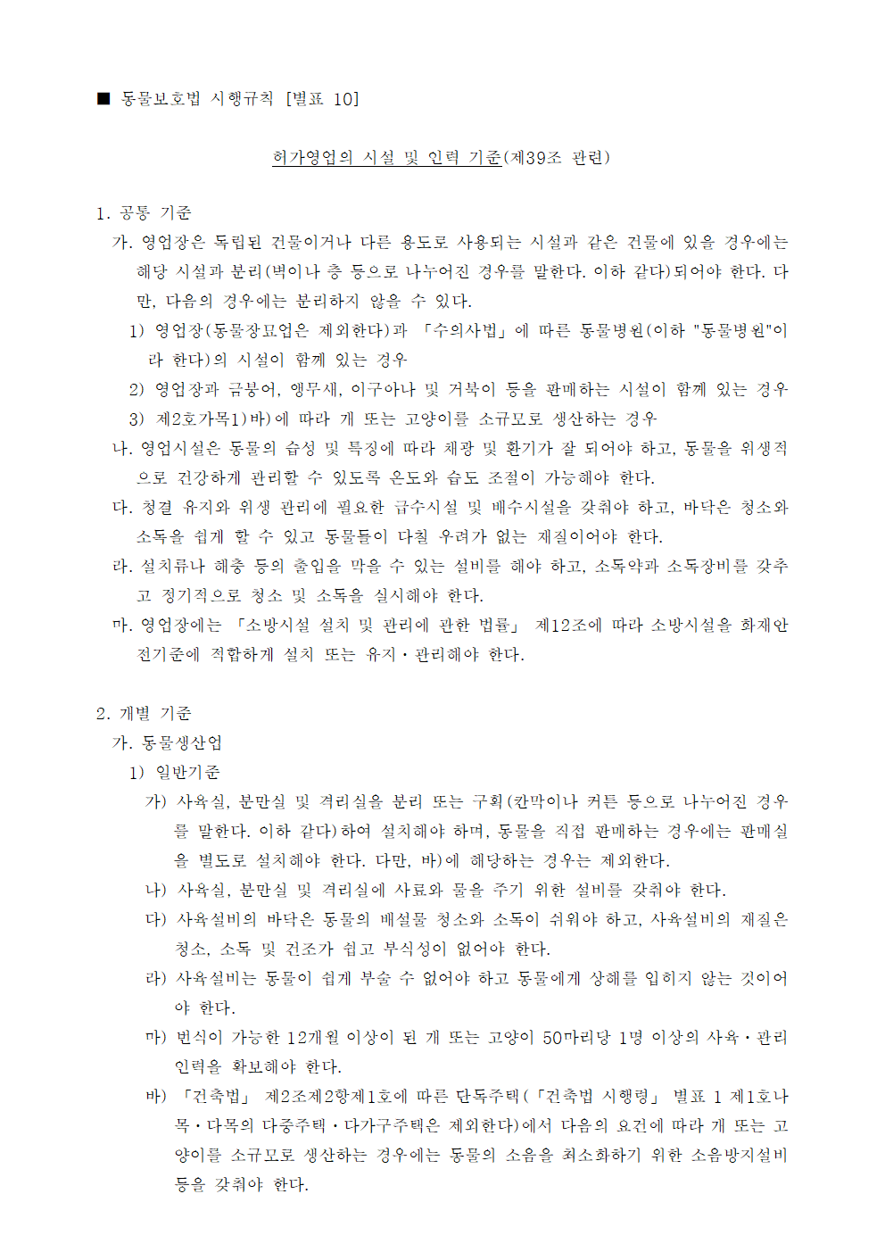 - 관리 인원은 개, 고양이 50마리당 1명 이상 필요합니다.