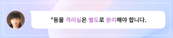 전염병 관리가 가장 중요합니다. 따라서 격리실은 별도로 분리된 공간이어야 합니다.