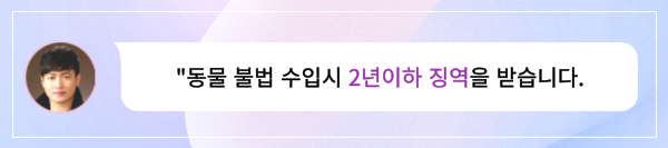 무허가로 동물을 수입해서 판매할 경우 최대 2년 이하 징역이나 2천만 원 이하의 벌금이 부과될 수 있습니다.