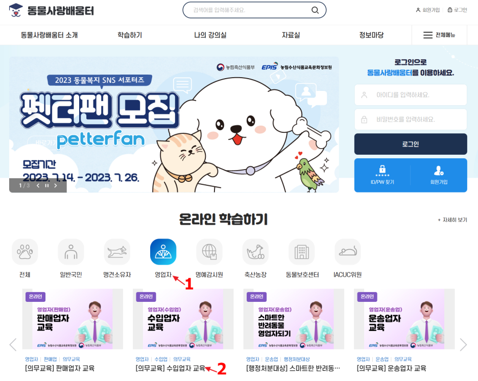 교육 수료증은 동물사랑배움터 홈페이지에서 교육을 이수하면 받을 수 있어요.
