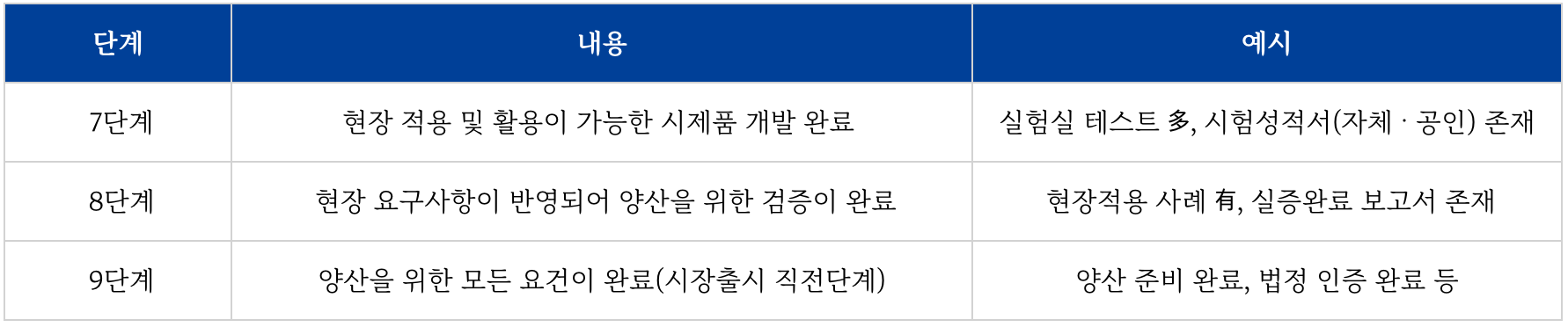 - TRL(기술성숙도) 7~9 단계에 해당하는 제품 또는 서비스
